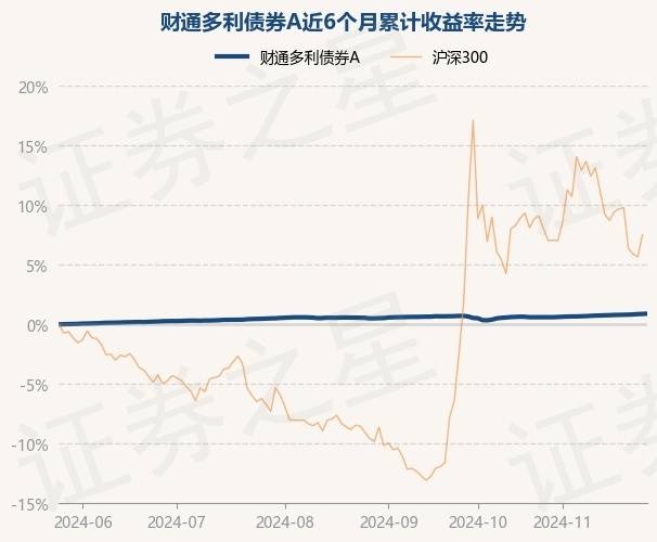 证券之星消息,11月27日,财通多利债券A最新单位净值为1.1332元,累计净值为1.1332元,较前一交易日上涨0.02%。历史数据显示该基金近1个月上涨0.29%,近3个月上涨0.39%,近6个月上涨0.9%,近1年上涨2.52%。该基金近6个月的累计收益率走势如下图: