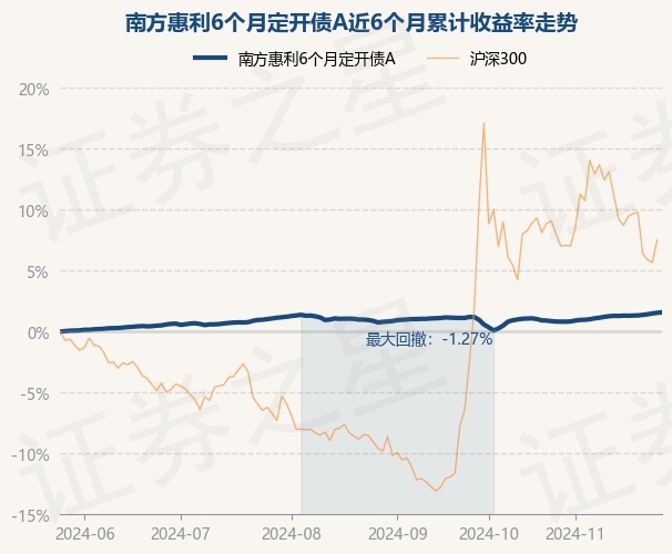 证券之星消息,11月27日,南方惠利6个月定开债A最新单位净值为1.2329元,累计净值为1.2729元,较前一交易日上涨0.04%。历史数据显示该基金近1个月上涨0.72%,近3个月上涨0.83%,近6个月上涨1.58%,近1年上涨4.56%。该基金近6个月的累计收益率走势如下图:
