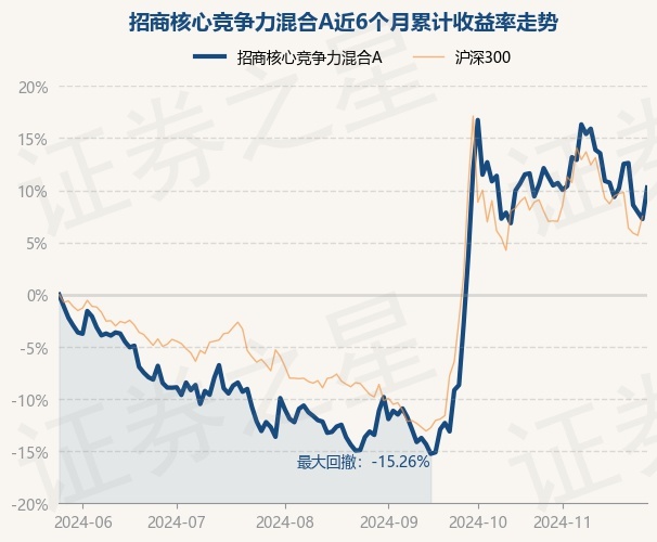 证券之星消息,11月27日,招商核心竞争力混合A最新单位净值为1.0306元,累计净值为1.3123元,较前一交易日上涨2.81%。历史数据显示该基金近1个月下跌0.26%,近3个月上涨26.92%,近6个月上涨10.26%,近1年上涨0.03%。该基金近6个月的累计收益率走势如下图: