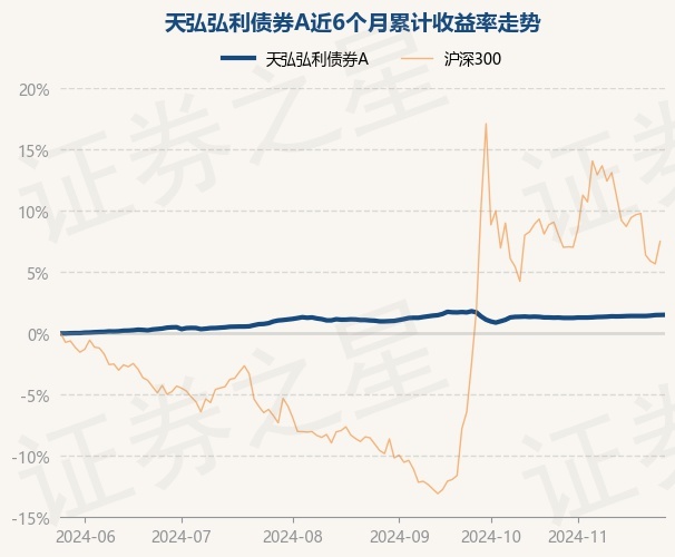 证券之星消息,11月27日,天弘弘利债券A最新单位净值为1.1069元,累计净值为1.5693元,较前一交易日上涨0.01%。历史数据显示该基金近1个月上涨0.23%,近3个月上涨0.53%,近6个月上涨1.51%,近1年上涨8.32%。该基金近6个月的累计收益率走势如下图: