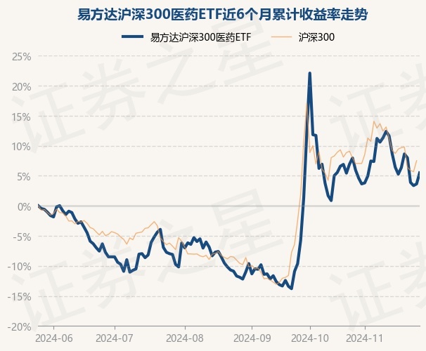 证券之星消息,11月27日,易方达沪深300医药ETF最新单位净值为0.3762元,累计净值为1.5048元,较前一交易日上涨1.79%。历史数据显示该基金近1个月下跌1.34%,近3个月上涨19.73%,近6个月上涨5.5%,近1年下跌12.53%。该基金近6个月的累计收益率走势如下图: