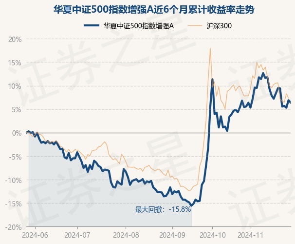 证券之星消息,11月28日,华夏中证500指数增强A最新单位净值为1.8426元,累计净值为1.8426元,较前一交易日下跌0.45%。历史数据显示该基金近1个月下跌0.36%,近3个月上涨23.02%,近6个月上涨6.42%,近1年上涨7.35%。该基金近6个月的累计收益率走势如下图: