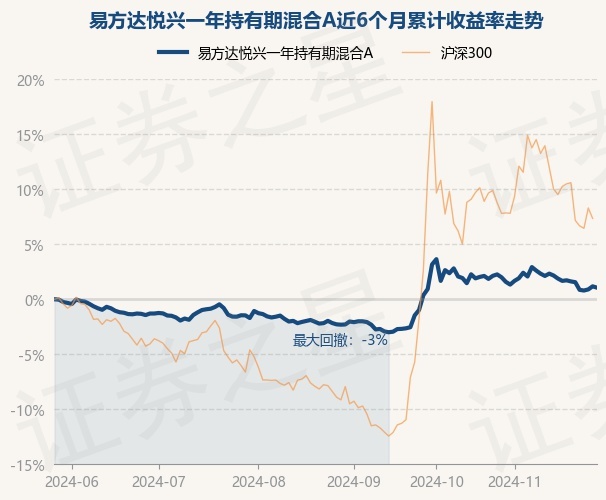 证券之星消息,11月28日,易方达悦兴一年持有期混合A最新单位净值为1.0147元,累计净值为1.0147元,较前一交易日下跌0.12%。历史数据显示该基金近1个月下跌1.18%,近3个月上涨3.45%,近6个月上涨1.06%,近1年上涨3.45%。该基金近6个月的累计收益率走势如下图: