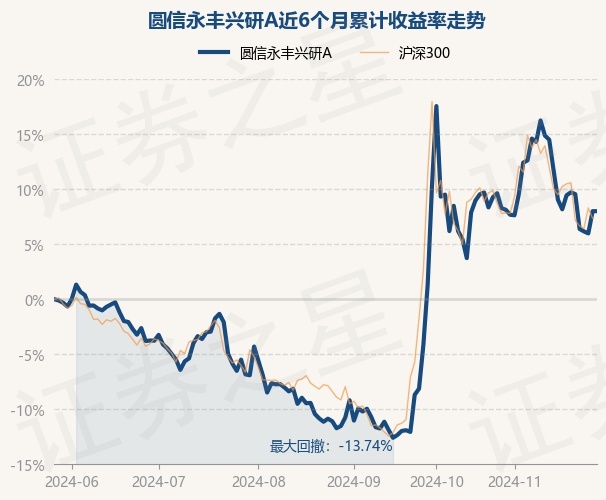 证券之星消息,11月28日,圆信永丰兴研A最新单位净值为1.1278元,累计净值为1.1278元,较前一交易日上涨0.0%。历史数据显示该基金近1个月下跌2.03%,近3个月上涨21.39%,近6个月上涨7.41%,近1年上涨7.36%。该基金近6个月的累计收益率走势如下图: