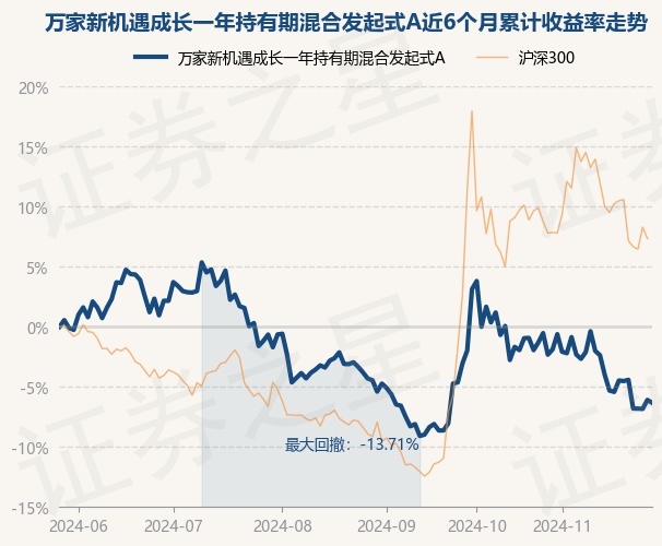 证券之星消息,11月28日,万家新机遇成长一年持有期混合发起式A最新单位净值为0.8403元,累计净值为0.8403元,较前一交易日下跌0.26%。历史数据显示该基金近1个月下跌5.84%,近3个月下跌1.97%,近6个月下跌6.33%,近1年上涨2.04%。该基金近6个月的累计收益率走势如下图: