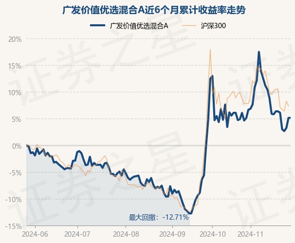 证券之星消息,11月28日,广发价值优选混合A最新单位净值为0.9997元,累计净值为0.9997元,较前一交易日上涨0.0%。历史数据显示该基金近1个月下跌1.23%,近3个月上涨15.85%,近6个月上涨4.78%,近1年上涨18.79%。该基金近6个月的累计收益率走势如下图: