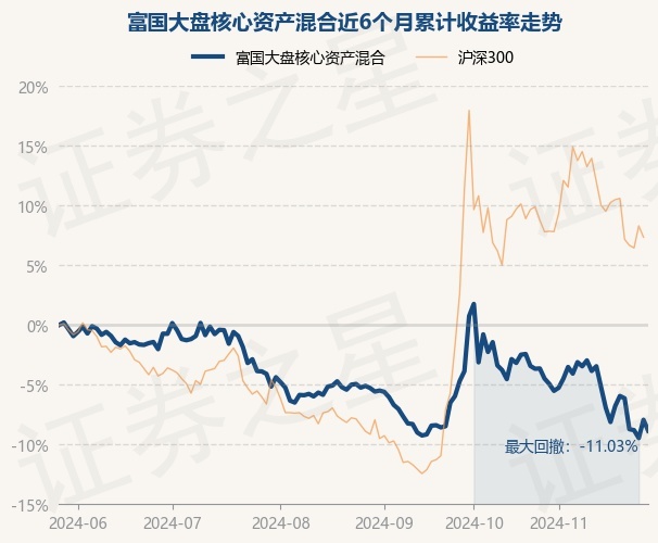 证券之星消息,11月28日,富国大盘核心资产混合最新单位净值为0.7444元,累计净值为0.7444元,较前一交易日下跌1.0%。历史数据显示该基金近1个月下跌5.41%,近3个月下跌3.77%,近6个月下跌8.85%,近1年下跌4.63%。该基金近6个月的累计收益率走势如下图: