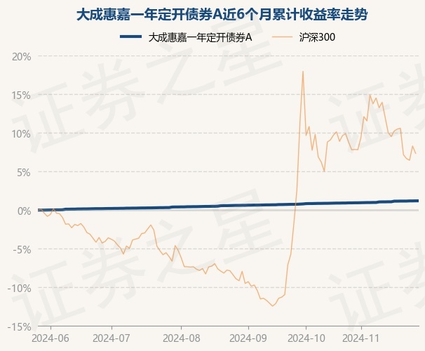 证券之星消息,11月28日,大成惠嘉一年定开债券A最新单位净值为1.0115元,累计净值为1.1243元,较前一交易日上涨0.0%。历史数据显示该基金近1个月上涨0.26%,近3个月上涨0.59%,近6个月上涨1.2%,近1年上涨2.2%。该基金近6个月的累计收益率走势如下图:
