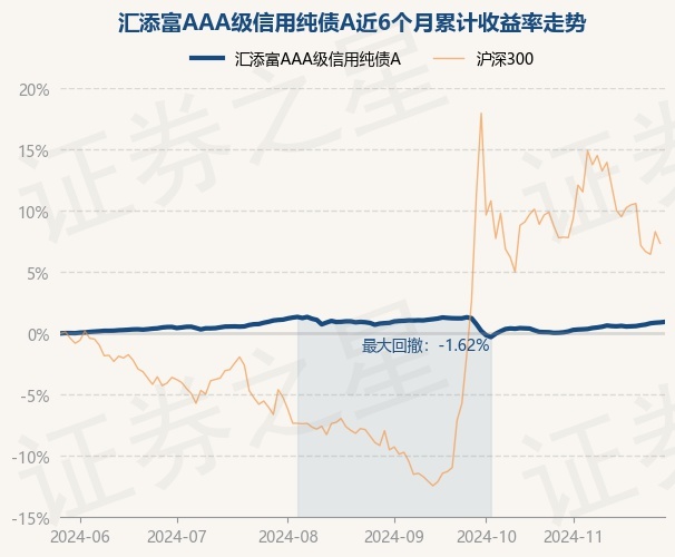 证券之星消息,11月28日,汇添富AAA级信用纯债A最新单位净值为1.1497元,累计净值为1.2227元,较前一交易日上涨0.04%。历史数据显示该基金近1个月上涨0.9%,近3个月上涨0.14%,近6个月上涨0.94%,近1年上涨4.03%。该基金近6个月的累计收益率走势如下图: