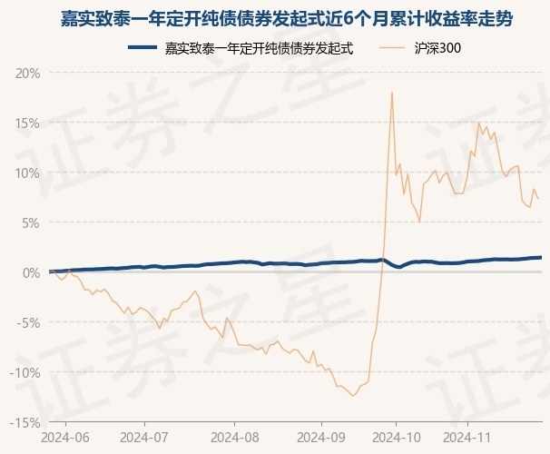 证券之星消息,11月28日,嘉实致泰一年定开纯债债券发起式最新单位净值为1.0321元,累计净值为1.0717元,较前一交易日上涨0.04%。历史数据显示该基金近1个月上涨0.58%,近3个月上涨0.73%,近6个月上涨1.44%,近1年上涨4.38%。该基金近6个月的累计收益率走势如下图: