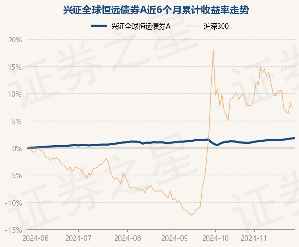 证券之星消息,11月28日,兴证全球恒远债券A最新单位净值为1.0382元,累计净值为1.0582元,较前一交易日上涨0.07%。历史数据显示该基金近1个月上涨0.85%,近3个月上涨0.86%,近6个月上涨1.79%,近1年上涨4.82%。该基金近6个月的累计收益率走势如下图: