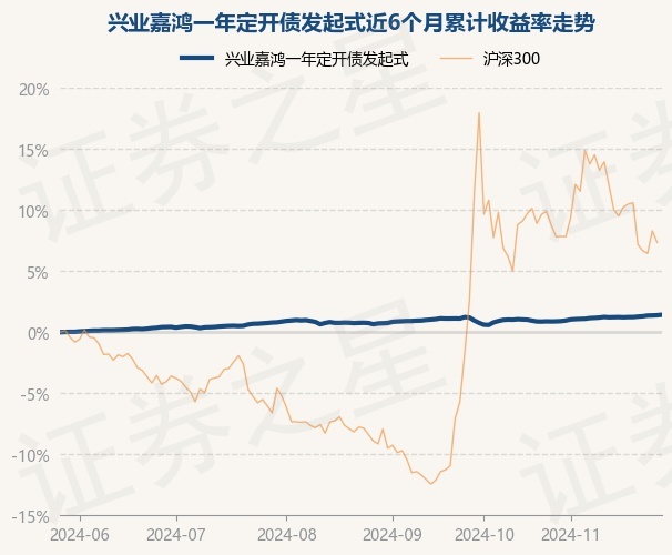 证券之星消息,11月28日,兴业嘉鸿一年定开债发起式最新单位净值为1.065元,累计净值为1.1065元,较前一交易日上涨0.04%。历史数据显示该基金近1个月上涨0.55%,近3个月上涨0.71%,近6个月上涨1.43%,近1年上涨7.18%。该基金近6个月的累计收益率走势如下图: