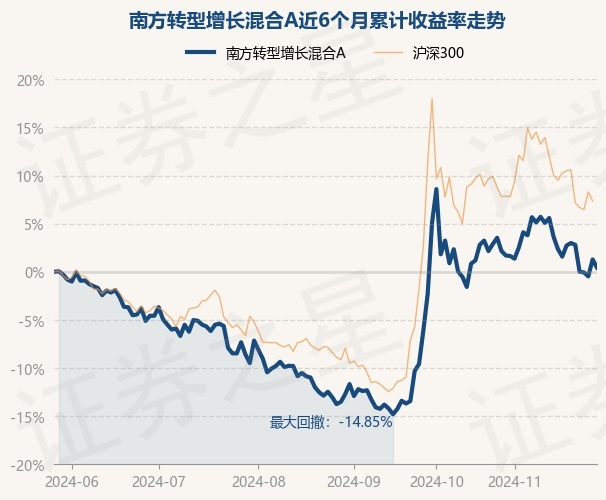 证券之星消息,11月28日,南方转型增长混合A最新单位净值为1.8738元,累计净值为1.8738元,较前一交易日下跌0.84%。历史数据显示该基金近1个月下跌2.99%,近3个月上涨16.13%,近6个月上涨0.43%,近1年上涨5.86%。该基金近6个月的累计收益率走势如下图: