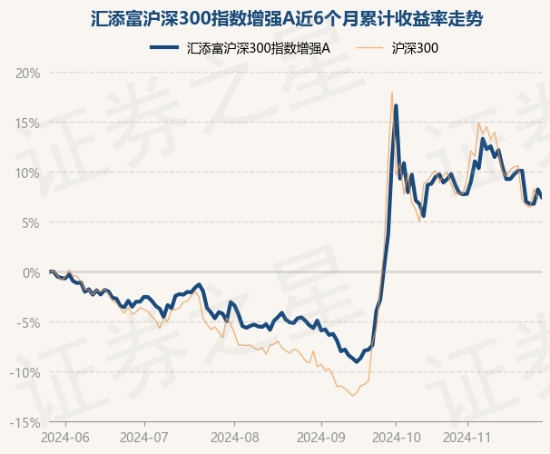 证券之星消息,11月28日,汇添富沪深300指数增强A最新单位净值为1.3188元,累计净值为1.5287元,较前一交易日下跌0.72%。历史数据显示该基金近1个月下跌2.1%,近3个月上涨13.56%,近6个月上涨7.47%,近1年上涨12.1%。该基金近6个月的累计收益率走势如下图: