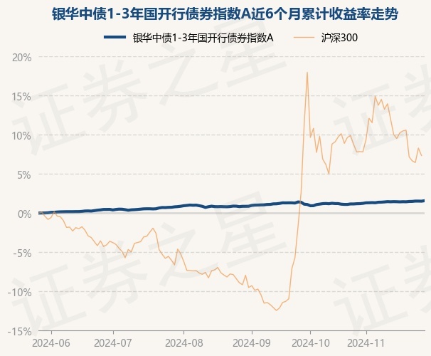 证券之星消息,11月28日,银华中债1-3年国开行债券指数A最新单位净值为1.0616元,累计净值为1.1506元,较前一交易日上涨0.06%。历史数据显示该基金近1个月上涨0.41%,近3个月上涨0.71%,近6个月上涨1.58%,近1年上涨4.17%。该基金近6个月的累计收益率走势如下图: