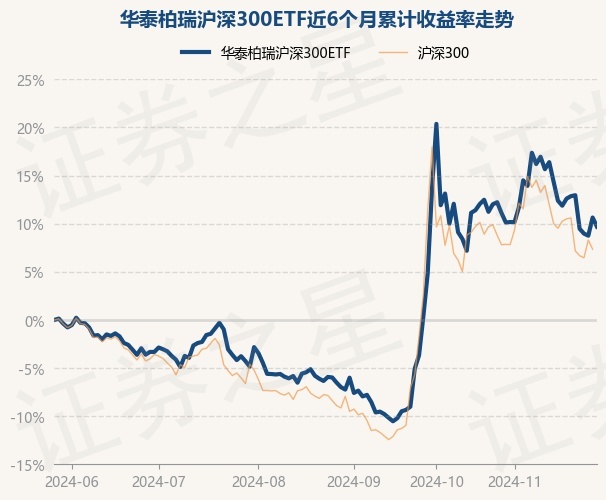 证券之星消息,11月28日,华泰柏瑞沪深300ETF最新单位净值为3.9567元,累计净值为1.7159元,较前一交易日下跌0.86%。历史数据显示该基金近1个月下跌2.26%,近3个月上涨17.92%,近6个月上涨9.68%,近1年上涨12.66%。该基金近6个月的累计收益率走势如下图: