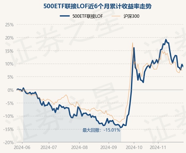证券之星消息,11月28日,500ETF联接LOF最新单位净值为1.6109元,累计净值为1.7109元,较前一交易日下跌0.76%。历史数据显示该基金近1个月下跌2.09%,近3个月上涨25.96%,近6个月上涨8.85%,近1年上涨4.03%。该基金近6个月的累计收益率走势如下图: