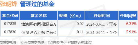 张明烨先生:中国国籍,本科、硕士毕业于清华大学化学工程系,自2015年10月起先后于东北证券研究所、民生证券研究院、东兴证券研究所担任行业分析师。2020年12月加入信达澳亚基金管理有限公司任行业研究员、基金经理助理。2024年3月11日起任信澳匠心回报混合型证券投资基金基金经理。