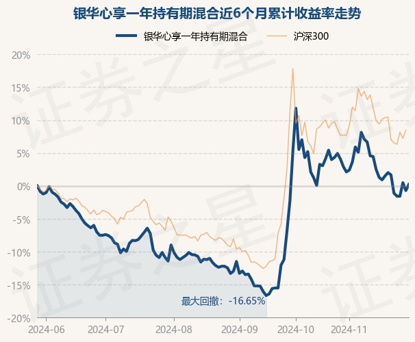 证券之星消息,11月29日,银华心享一年持有期混合最新单位净值为0.676元,累计净值为0.676元,较前一交易日上涨0.94%。历史数据显示该基金近1个月下跌3.7%,近3个月上涨15.14%,近6个月上涨0.22%,近1年下跌5.45%。该基金近6个月的累计收益率走势如下图: