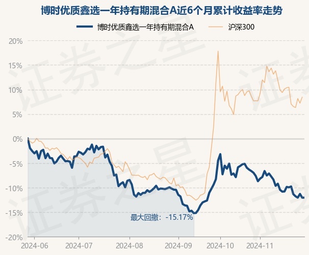 证券之星消息,11月29日,博时优质鑫选一年持有期混合A最新单位净值为0.7564元,累计净值为0.7564元,较前一交易日上涨0.0%。历史数据显示该基金近1个月下跌5.14%,近3个月下跌1.5%,近6个月下跌11.74%,近1年上涨3.69%。该基金近6个月的累计收益率走势如下图: