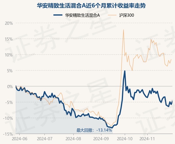 证券之星消息,11月29日,华安精致生活混合A最新单位净值为1.2369元,累计净值为1.2369元,较前一交易日上涨1.05%。历史数据显示该基金近1个月下跌2.66%,近3个月上涨6.28%,近6个月下跌4.77%,近1年上涨8.74%。该基金近6个月的累计收益率走势如下图: