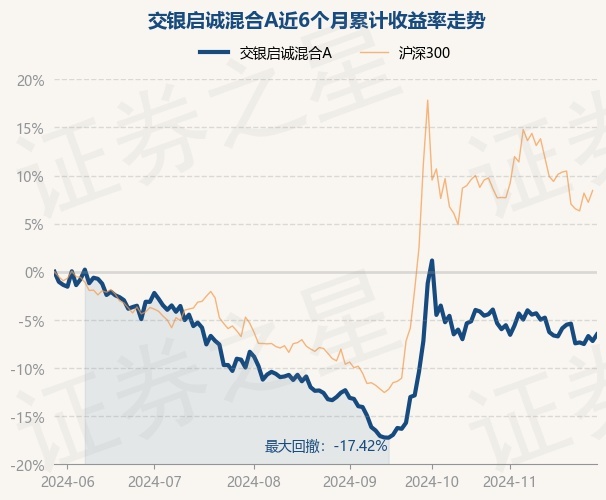 证券之星消息,11月29日,交银启诚混合A最新单位净值为1.0865元,累计净值为1.0865元,较前一交易日上涨0.74%。历史数据显示该基金近1个月下跌1.22%,近3个月上涨6.93%,近6个月下跌6.51%,近1年上涨6.75%。该基金近6个月的累计收益率走势如下图: