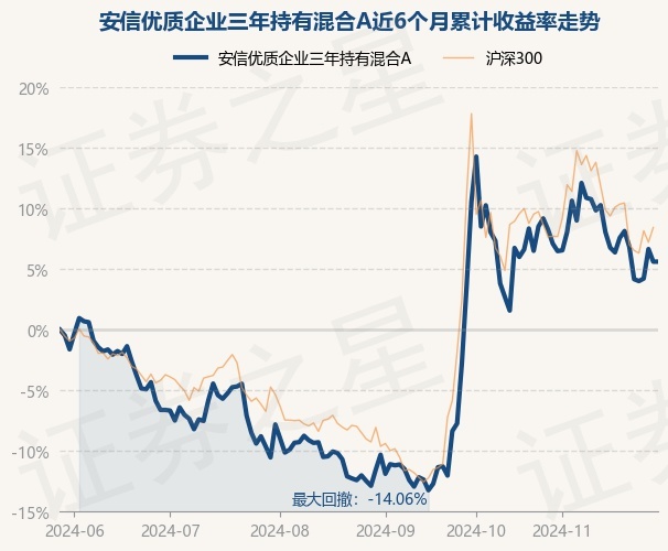证券之星消息,11月29日,安信优质企业三年持有混合A最新单位净值为0.8197元,累计净值为0.8197元,较前一交易日上涨0.0%。历史数据显示该基金近1个月下跌1.49%,近3个月上涨20.56%,近6个月上涨6.66%,近1年上涨5.71%。该基金近6个月的累计收益率走势如下图: