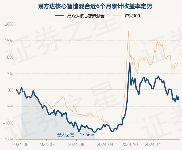 证券之星消息,11月29日,易方达核心智造混合最新单位净值为0.86元,累计净值为0.86元,较前一交易日上涨1.19%。历史数据显示该基金近1个月下跌3.63%,近3个月上涨10.6%,近6个月下跌1.93%,近1年上涨14.07%。该基金近6个月的累计收益率走势如下图: