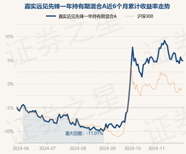 嘉实远见先锋一年持有期混合A为混合型-偏股基金,根据最新一期基金季报显示,该基金资产配置:股票占净值比89.14%,债券占净值比0.04%,现金占净值比5.34%。基金十大重仓股如下: