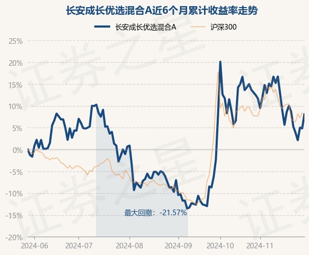 证券之星消息,11月29日,长安成长优选混合A最新单位净值为0.5355元,累计净值为0.5355元,较前一交易日上涨3.06%。历史数据显示该基金近1个月下跌4.44%,近3个月上涨19.66%,近6个月上涨8.05%,近1年上涨8.62%。该基金近6个月的累计收益率走势如下图: