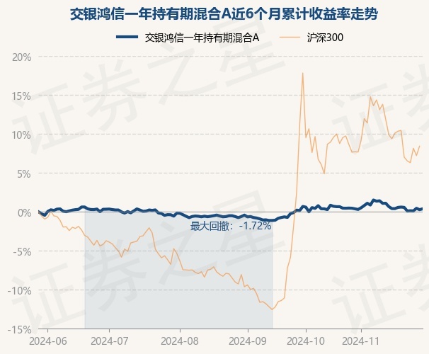 证券之星消息,11月29日,交银鸿信一年持有期混合A最新单位净值为1.022元,累计净值为1.022元,较前一交易日上涨0.11%。历史数据显示该基金近1个月下跌0.08%,近3个月上涨1.0%,近6个月上涨0.39%,近1年上涨4.22%。该基金近6个月的累计收益率走势如下图: