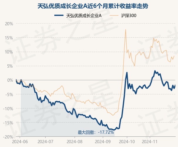 证券之星消息,11月29日,天弘优质成长企业A最新单位净值为1.7056元,累计净值为1.7056元,较前一交易日上涨1.14%。历史数据显示该基金近1个月上涨0.92%,近3个月上涨16.65%,近6个月下跌1.91%,近1年上涨4.2%。该基金近6个月的累计收益率走势如下图: