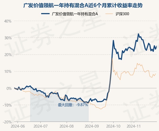 证券之星消息,11月29日,广发价值领航一年持有混合A最新单位净值为1.2319元,累计净值为1.2319元,较前一交易日上涨1.33%。历史数据显示该基金近1个月上涨0.8%,近3个月上涨34.74%,近6个月上涨24.79%,近1年上涨24.53%。该基金近6个月的累计收益率走势如下图: