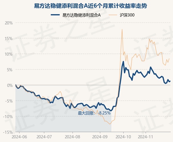 证券之星消息,11月29日,易方达稳健添利混合A最新单位净值为0.9543元,累计净值为0.9543元,较前一交易日上涨0.18%。历史数据显示该基金近1个月下跌2.21%,近3个月上涨8.21%,近6个月上涨1.24%,近1年上涨5.38%。该基金近6个月的累计收益率走势如下图: