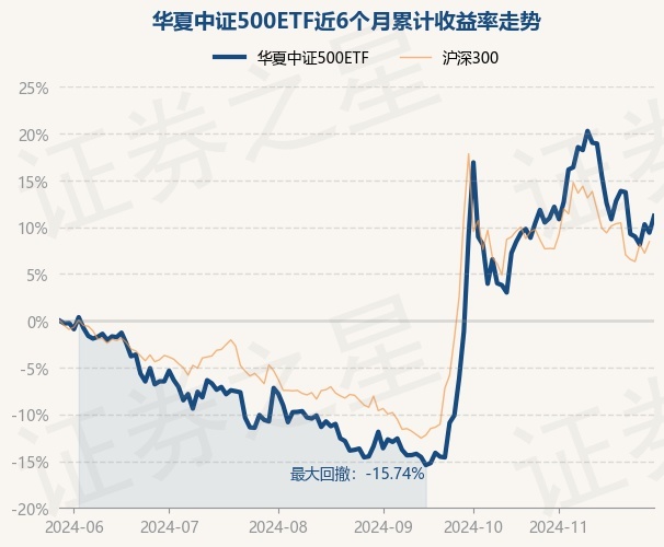 证券之星消息,11月29日,华夏中证500ETF最新单位净值为3.2053元,累计净值为0.7016元,较前一交易日上涨1.63%。历史数据显示该基金近1个月上涨0.64%,近3个月上涨28.41%,近6个月上涨11.19%,近1年上涨6.86%。该基金近6个月的累计收益率走势如下图: