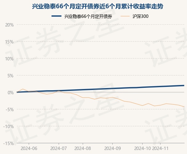 证券之星消息,11月29日,兴业稳泰66个月定开债券最新单位净值为1.0371元,累计净值为1.1601元,较前一交易日上涨0.07%。历史数据显示该基金近1个月上涨0.37%,近3个月上涨1.01%,近6个月上涨1.96%,近1年上涨3.78%。该基金近6个月的累计收益率走势如下图:
