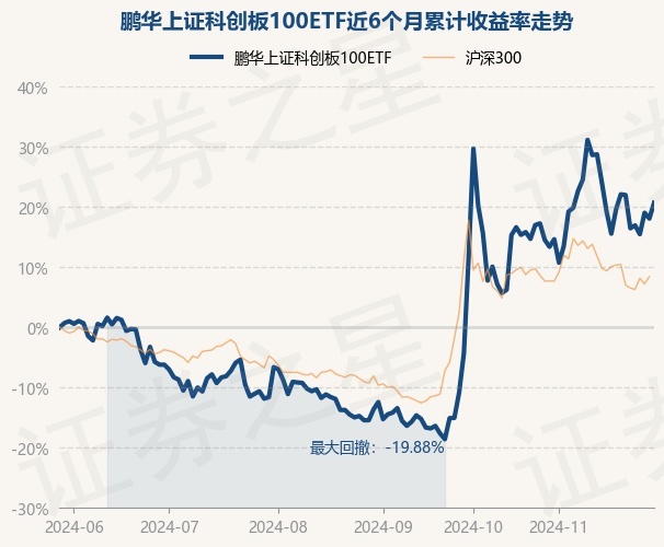 证券之星消息,11月29日,鹏华上证科创板100ETF最新单位净值为0.9415元,累计净值为0.9415元,较前一交易日上涨2.23%。历史数据显示该基金近1个月上涨5.37%,近3个月上涨39.75%,近6个月上涨20.72%,近1年下跌8.67%。该基金近6个月的累计收益率走势如下图: