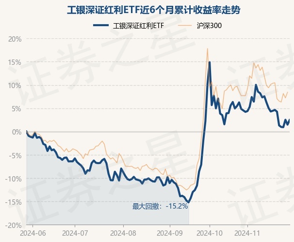 证券之星消息,11月29日,工银深证红利ETF最新单位净值为1.7084元,累计净值为1.9454元,较前一交易日上涨0.99%。历史数据显示该基金近1个月下跌2.3%,近3个月上涨15.4%,近6个月上涨2.28%,近1年上涨5.78%。该基金近6个月的累计收益率走势如下图: