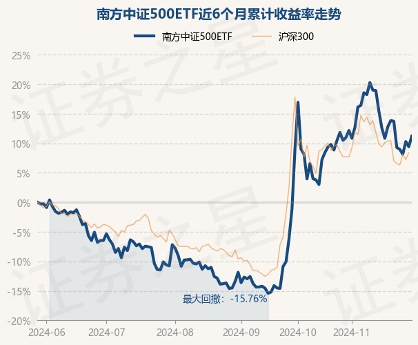 证券之星消息,11月29日,南方中证500ETF最新单位净值为5.9471元,累计净值为1.9374元,较前一交易日上涨1.64%。历史数据显示该基金近1个月上涨0.65%,近3个月上涨28.42%,近6个月上涨11.21%,近1年上涨6.91%。该基金近6个月的累计收益率走势如下图: