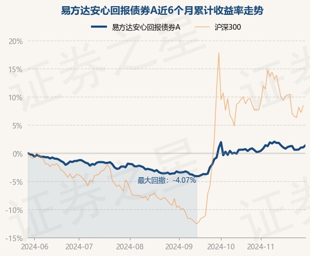 证券之星消息,11月29日,易方达安心回报债券A最新单位净值为1.971元,累计净值为3.07元,较前一交易日上涨0.34%。历史数据显示该基金近1个月上涨0.82%,近3个月上涨5.15%,近6个月上涨1.38%,近1年上涨6.58%。该基金近6个月的累计收益率走势如下图: