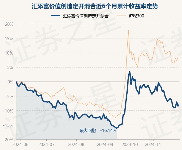 证券之星消息,11月29日,汇添富价值创造定开混合最新单位净值为1.2621元,累计净值为1.2621元,较前一交易日上涨0.6%。历史数据显示该基金近1个月下跌5.74%,近3个月上涨5.17%,近6个月下跌7.96%,近1年下跌8.13%。该基金近6个月的累计收益率走势如下图: