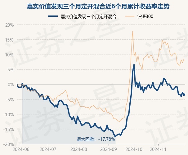 证券之星消息,11月29日,嘉实价值发现三个月定开混合最新单位净值为0.9599元,累计净值为1.0578元,较前一交易日上涨0.59%。历史数据显示该基金近1个月下跌2.01%,近3个月上涨14.25%,近6个月下跌3.19%,近1年上涨10.14%。该基金近6个月的累计收益率走势如下图: