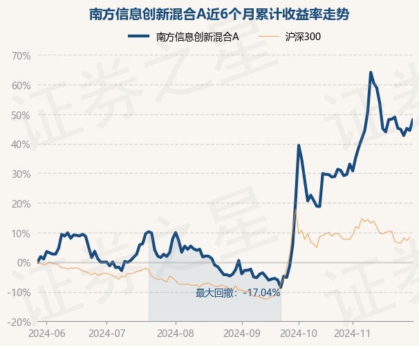 证券之星消息,11月29日,南方信息创新混合A最新单位净值为1.8759元,累计净值为1.8759元,较前一交易日上涨2.47%。历史数据显示该基金近1个月上涨14.57%,近3个月上涨51.81%,近6个月上涨48.04%,近1年上涨14.38%。该基金近6个月的累计收益率走势如下图: