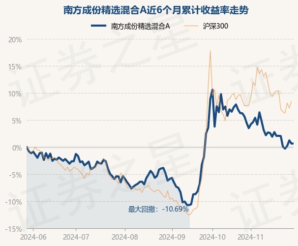 证券之星消息,11月29日,南方成份精选混合A最新单位净值为0.5794元,累计净值为1.972元,较前一交易日上涨0.02%。历史数据显示该基金近1个月下跌4.72%,近3个月上涨7.32%,近6个月上涨0.7%,近1年上涨0.85%。该基金近6个月的累计收益率走势如下图:
