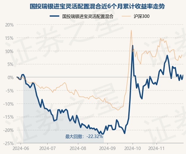证券之星消息,11月29日,国投瑞银进宝灵活配置混合最新单位净值为2.031元,累计净值为2.056元,较前一交易日上涨1.57%。历史数据显示该基金近1个月上涨2.93%,近3个月上涨26.37%,近6个月上涨0.67%,近1年下跌8.21%。该基金近6个月的累计收益率走势如下图: