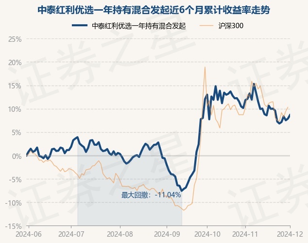 证券之星消息,12月2日,中泰红利优选一年持有混合发起最新单位净值为1.2914元,累计净值为1.2914元,较前一交易日上涨0.73%。历史数据显示该基金近1个月下跌2.84%,近3个月上涨10.88%,近6个月上涨8.66%,近1年上涨28.09%。该基金近6个月的累计收益率走势如下图: