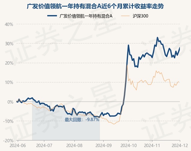 证券之星消息,12月2日,广发价值领航一年持有混合A最新单位净值为1.2524元,累计净值为1.2524元,较前一交易日上涨1.66%。历史数据显示该基金近1个月上涨4.07%,近3个月上涨37.61%,近6个月上涨27.63%,近1年上涨27.17%。该基金近6个月的累计收益率走势如下图: