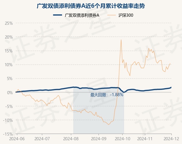 证券之星消息,12月2日,广发双债添利债券A最新单位净值为1.2263元,累计净值为1.6492元,较前一交易日上涨0.25%。历史数据显示该基金近1个月上涨1.17%,近3个月上涨0.52%,近6个月上涨1.74%,近1年上涨5.85%。该基金近6个月的累计收益率走势如下图: