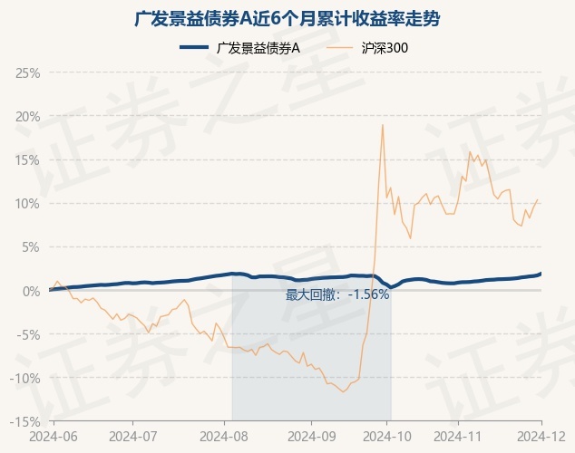证券之星消息,12月2日,广发景益债券A最新单位净值为1.0916元,累计净值为1.0916元,较前一交易日上涨0.19%。历史数据显示该基金近1个月上涨1.02%,近3个月上涨0.61%,近6个月上涨1.86%,近1年上涨6.37%。该基金近6个月的累计收益率走势如下图:
