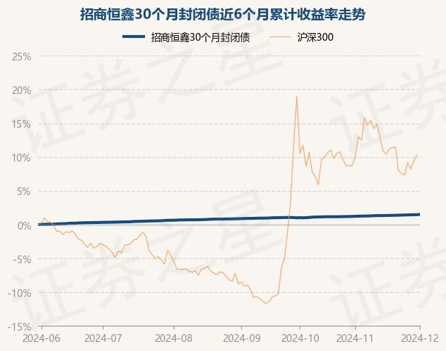 证券之星消息,12月2日,招商恒鑫30个月封闭债最新单位净值为1.0339元,累计净值为1.0558元,较前一交易日上涨0.04%。历史数据显示该基金近1个月上涨0.27%,近3个月上涨0.61%,近6个月上涨1.5%,近1年上涨3.33%。该基金近6个月的累计收益率走势如下图: